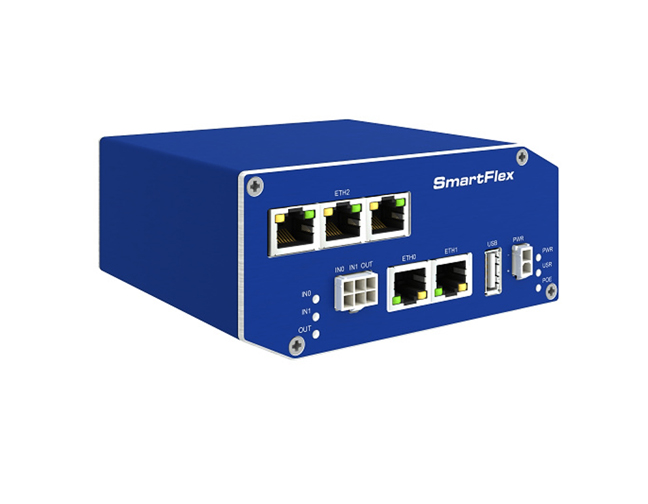 The standard configuration includes 5 Ethernet ports with 3 independent LANs/ IP addresses. The standard configuration also includes 1 USB host port, 1 microSD card holder, 2 binary inputs(I/O) . An optional built-in Wi-Fi module is also available, with industrial grade operating temperature ranges from -40 to +75 °C. The SmartFlex SR300 supports real time data encryption, and the creation of VPN tunnels using IPsec, OpenVPN and L2TP. It supports DHCP, NAT, NAT-T, DynDNS, NTP, VRRP, and numerous other functions.