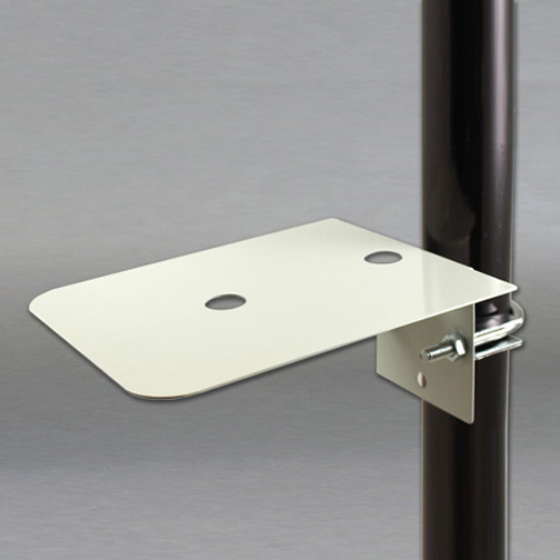 BRKT-Platform-6C, DINSpace Pole or Wall Mount Cellular Antenna Bracket, Powder Coated Steel With Removable 2" pole mount U-bolt kit, 6" x 7.5" (W x D) Antenna Platform. Horizontal Surface Provides Ground Plane That Is Necessary For Some Cellular Antennas. Two holes (one 7/8″ and one 3/4") For Antenna Mounting Or Cable Management.