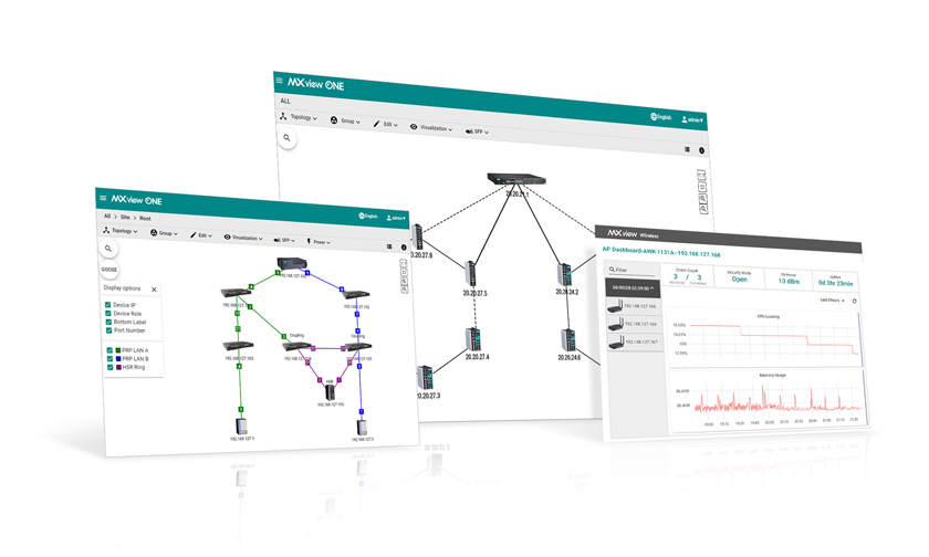 In addition, MXview One supports the optional MXview Wireless, MXview Power, and MXview Security add-on modules. MXview Wireless provides additional advanced functions for wireless applications to monitor and troubleshoot your network, and help you minimize downtime. MXview Power provides additional advanced functions for power applications based on IEC 61850 to monitor and troubleshoot substation networks in real-time. MXview Security provides additional advanced functions to enhance field security, including centralized management and deployment of firewall policies, and updating cybersecurity packages.