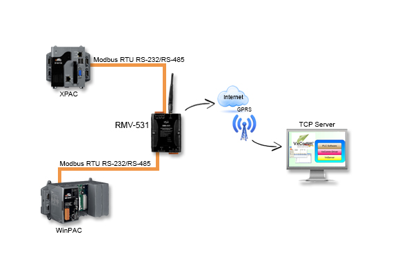 Introducing the intelligent multiport serial to 2G/3G gateway for industry M2M applicationsm the RMV-531 is designed for connecting to RS-232/485 devices that operate on GPRS/WCDMA networks. The user-friendly VxComm Driver/Utility and VxServer allow users to easily turn the built-in COM ports of the RMV-531 into standard COM ports on a PC. By virtue of its protocol independence, a small-core OS and high flexibility, the RMV-531 is able to meet the demands of every network-enabled application. The RMV-531 also supports GPRS/WCDMA network automatic re-connection function when the RMV-531 in the event when issues on the network arises. M2M solutions will improve the quality of service and reduce costs in operations. Many application areas can be improved by using RMV-531.