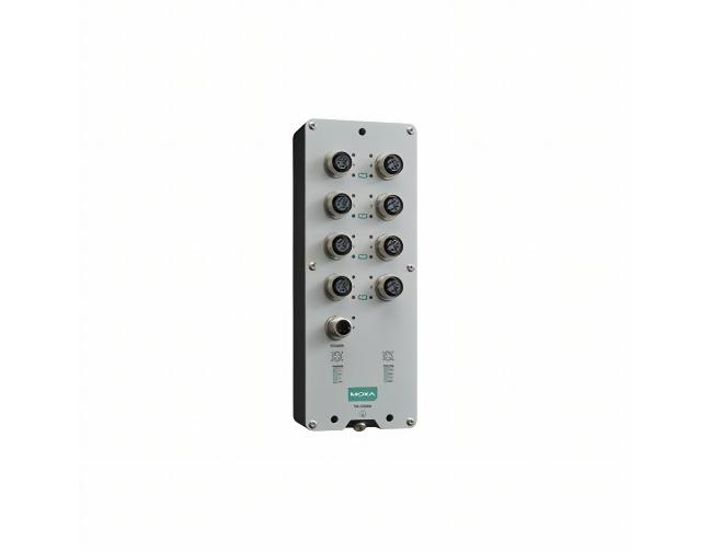 Moxa TN-5308A-8PoE-WV-T - EN 50155 unmanaged Ethernet switch with 8 10/100BaseT(X) PoE ports, M12 connector, single power input by MOXA