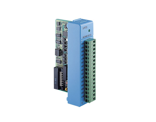 The ADAM-5013 is a 16-bit, 3-channel RTD input module that features programmable input ranges on all channels. This module is an extremely cost-effective solution for industrial measurement and monitoring applications. Its optical isolated inputs provide 3,000 VDC of isolation between the analog input and the module, protecting the module and peripherals from damage due to high input line voltage.