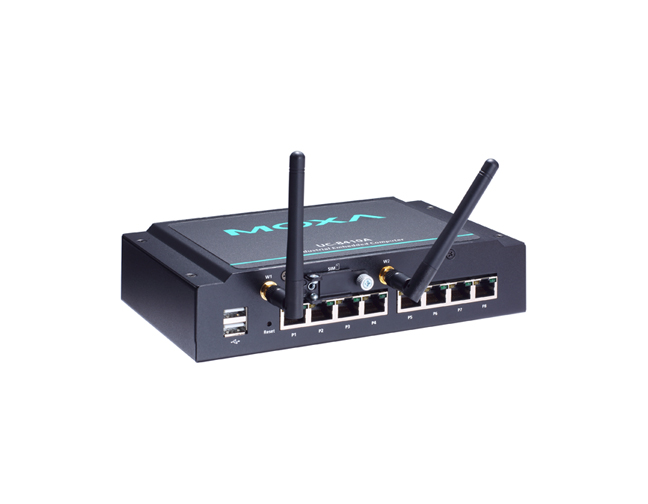 Moxa UC-8410A-LX1 - RISC dual-core embedded computer with 8 serial ports, 3 LANs, 4 DIOs, USB, 16GB mSATA, and Wireless-and-Secu by MOXA
