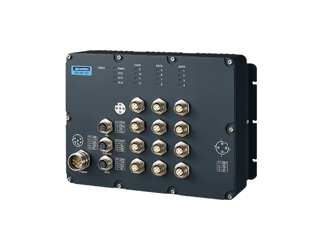 EKI-9512D M12 Managed Ethernet Switch is designed for railway applications, including rolling stock. EKI-9512D switch uses M12 connectors to ensure tight, robust connections, and to guarantee reliable operation against environmental disturbances, such as vibration and shock. EKI-9512D provides 12 Fast Ethernet M12 ports. In addition, EKI-9512D provides a wide power input range of 24/36/48/72/96/110 VDC; the dual, isolated power input increases the reliability of your communications system. The -40 to 70° C operating temperature and IP67-rated waterproof enclosure allow deployment in harsh environments. EKI-9512D is compliant with the essential sections of the European railway standard EN 50155, EN50121-3-2 covering operating temperature, power input voltage, surge, ESD, and vibration, making the switches suitable for a variety of industrial applications.