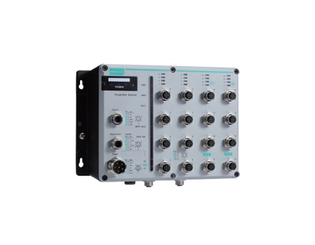 In addition, TN-5816A/5818A switches provide up to 16 Fast Ethernet M12 ports with 4 bypass relay ports, and 2 Gigabit Ethernet ports with bypass relay function. Furthermore, the -40 to 75°C operating temperature and IP54-rated waterproof enclosure allow deployment in harsh environments. The TN-5816A/5818A series Ethernet switches are compliant with essential sections of EN 50155, covering operating temperature, power input voltage, surge, ESD, and vibration, as well as conformal coating and power insulation, making the switches suitable for a variety of industrial applications.