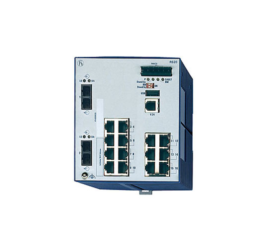 Hirschmann RS20-1600M2M2SDAE Industrial Ethernet Switch, 14 x 10/100Base-TX, RJ45 and 2 x 100Base-FX Multimode Fiber, SC, 9.6 - 60 VDC Powered, 0 to 60 deg C, Class 1 Div. II Rated, Enhanced Management