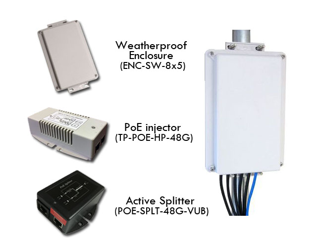 - Complete Kit: High Power PoE Injector, Weatherproof Enclosure, Splitter