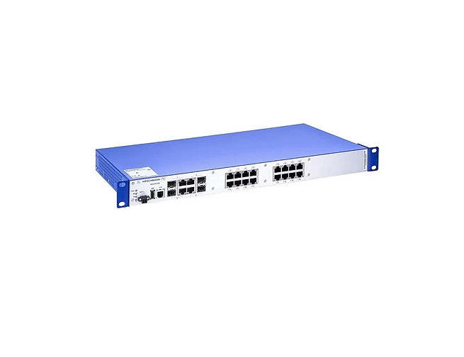 Hirschmann MACH104-16TX-PoEP-L3P 20-Port Gigabit Ethernet Switch, 16 x 10/100/1000Base-TX Ports PoE Plus, 4 GE RJ45/SFP Combo Ports, 100-240 VAC Powered, 19-Inch Rackmount, Layer 3 Professional Management.