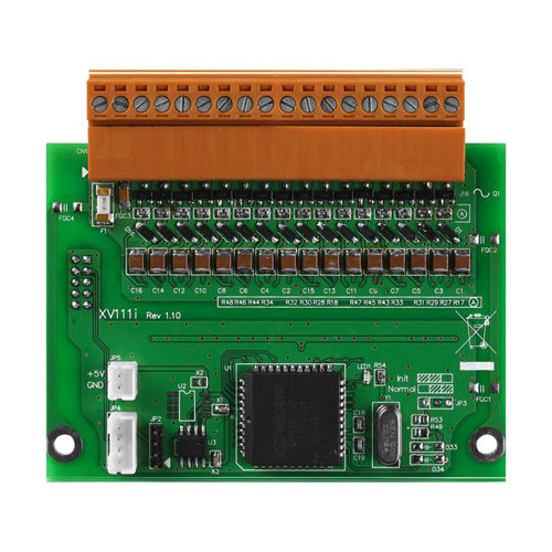 The XV111 provides 16 channels for digital output, each of which features photocouple isolation. The XV111 supports sink-type output with short circuit protection and provides options for configuring power-on digital output values. 4 kV ESD protection and 3750 VDC intra-module isolation are also provided. The XV111A has the same specifications as the XV111, except that the output types are reversed.