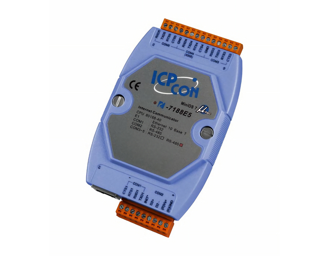 ICP DAS I-7188E5-485 - Serial to Ethernet Controller with one Ethernet Port, one RS-232 Port and four RS-485 Ports with 40 Mhz C by ICP DAS