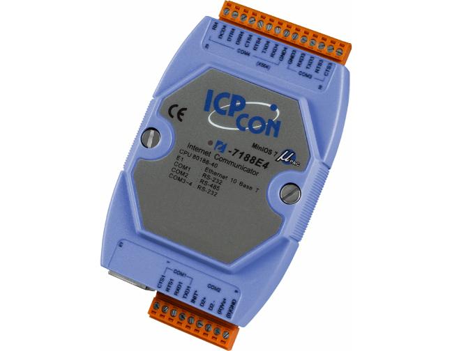 ICP DAS I-7188E4 - 4 Serial Ports to Ethernet Converter / Intelligent Controller with 40 Mhz CPU, without display. by ICP DAS