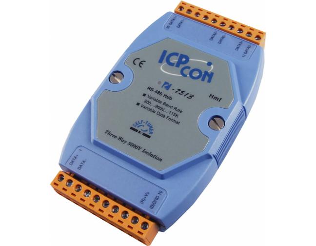 ICP DAS I-7513 - Three-Way Isolated RS-485 to 3-port RS-485 Hub. Expands RS-485 Network up to 4000 Feet (1200 Meters) by ICP DAS