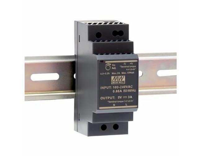 HDR-30-5 - AC-DC Ultra slim DIN rail power supply; Input range 85-264VAC; Output 5VDC at 3A; Pass LPS