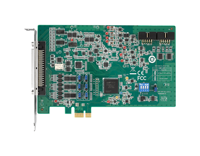 PCIE-1816/1816H is a 16-ch (up to 5 MS/s) multifunction DAQ card with integrated digital I/O, analog I/O, and counter functions. PCIE-1816/1816H also features analog and digital triggering support, 2-ch 16-bit analog outputs with waveform generation capability, 24-ch programmable digital I/O lines, and two 32-bit general purpose timer/counters.