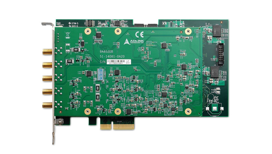 The ADLINK PCIe/PXIe-9852 is a 2-CH 14-bit 200 MS/s digitizer for high frequency and wide dynamic range signals with an input frequency up to 90 MHz. The 90 MHz bandwidth analog input with 50Ω impedance is designed to receive ±0.2 V, ±2 V, or ±10 V high speed signals. With a PCI Express bus interface and ample onboard acquisition memory up to 1 GB, the PCIe/PXIe-9852 easily manages simultaneous 2-CH data streaming. With high speed and high linearity 14-bit A/D converters and high stable onboard reference, the PCIe/PXIe-9852 provides both high accuracy and high dynamic performance, making it ideal for applications requiring high-speed data acquisition, such as optical fiber and LIDAR testing, and video signal analysis.