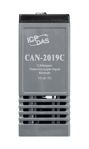 The CAN-2019C is a 10-channel universal analog input CANopen slave module that has voltage and current input types. It provides extremely accurate thermocouple measurement and automatic cold-junction compensation for each channel.