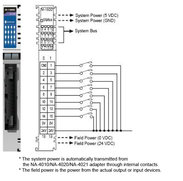Moxa M-1600 - *Discontinued* - I/O Module, 16DI, Sink, 24VDC, 20pin by MOXA
