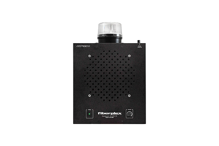 Each ADP unit is equipped with an AC line-powered supply to drive the amplifier and supply DC power to an attached FOI module. These are recommended for use with the FiberPlex FOI series FOI-2981 for line level or the FOI-2983 for 70V audio. These FOI units then transmit the signal via a fiber optic link to a FOI-4982, conveniently housed and powered by an ADP unit. From there the FOI-4982 drives up to 10 ADP units in a daisy chain. See the FiberPlex FAK for pre-bundled Annunciator packages.