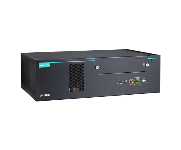 DA-820E-C3-LL-T of the DA-820E Series is a high-performance fanless 3U rackmount industrial computer powered by 13th Gen Intel® Core™ i3/i5/i7 processors, offering exceptional computing capabilities. It features a versatile I/O design, including 3 display ports (2 HDMI and 1 VGA), 6 USB ports, 4 Gigabit Ethernet ports, two 3-in-1 RS-232/422/485 serial ports, 6 DI ports, 2 DO ports, 4 standard PCIe expansion slots, and 1 proprietary expansion slot. Additionally, it is equipped with 4 hot-swappable 2.5” SSD slots, supporting Intel® RST RAID 0/1 functionality on SSD slots 1 and 2 for enhanced storage performance and reliability.