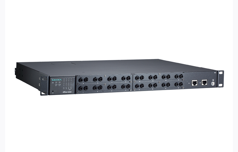 The NPort S9650I series, NPort S9650I-16B-2HV-IRIG-T, 16-port RS-232/422/485 device servers, which come with a built-in full-function managed Ethernet switch, are designed specifically for the harsh environmental conditions found in electrical substations. With both fiber and wire Ethernet ports supported, the combination of device server plus Ethernet switch gives users the ability to easily install, manage, and maintain the NPort S9650I itself, as well as attached serial devices.