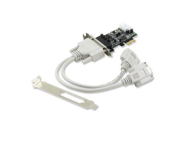 2 DB-9 serial fan out cable, requires only one PC bracket slot |