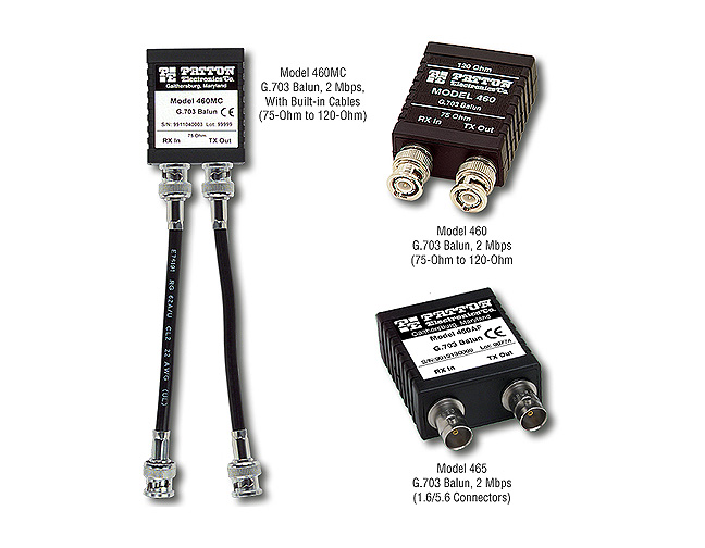 The Patton Model 460F series baluns are miniature G.703 baluns that allows 75 ohm coax hardware to communicate with 120 ohm twisted pair equipment. The Model 460 specifically addresses the ONP requirement that European PTTs offer 120 ohm twisted pair terminations to their customers. Some PTTs and private carriers are standardized on 75 ohm coax, or have customers whose CPE has only 75 ohm coax connections. The Model 460 presents a ready solution to this termination mismatch. Supporting E1 data rates to 2.048 Mbps, the Model 460 receives 75 ohm signals and converts them to 120 ohm for transmission over a network or reception by a CPE. The signals output by the Model 460 are scaled to match the pulse shape requirements specified by the CCITT G.703 standard. The Model 460 can perform 120 ohm to 75 ohm signal conversion as well, giving the device a dual role.